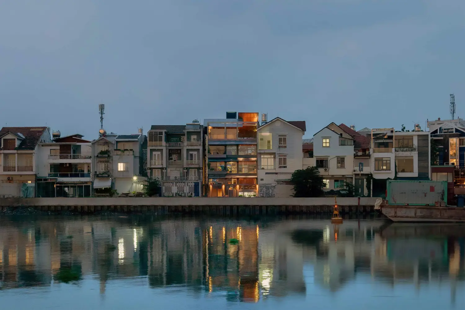 Mô tả văn bản do các kiến ​​trúc sư cung cấp. Từng là một biệt thự tân cổ điển – một phần của “bức tường” liên tục ngăn cách cộng đồng với sông Sài Gòn – Dom-Ino đã được cải tạo thành một không gian mở, nơi kiến ​​trúc, dòng sông và con người có thể kết nối lại. Xuất phát từ sự đồng cảm giữa chủ nhà và kiến ​​trúc sư, dự án đã loại bỏ những bức tường và vách ngăn dày, biến một ngôi nhà khép kín, biệt lập thành một không gian thoáng đãng, đa chức năng, nơi các hoạt động thường ngày được diễn ra trong ánh sáng, gió trời và cây xanh.