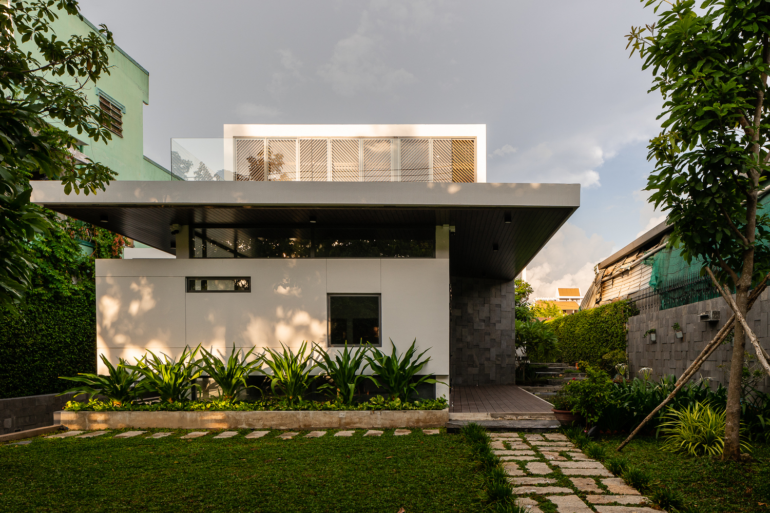 Mô tả bằng văn bản do kiến ​​trúc sư cung cấp. Đây là một biệt thự nhỏ dành cho gia đình hạt nhân, nằm trên con phố chính nhộn nhịp và đông đúc của thành phố Mỹ Tho – tỉnh Tiền Giang. Diện tích không quá lớn. Trên khu đất hạn chế, ngôi nhà cần đảm bảo mật độ xây dựng và khoảng cách để tạo không gian yên tĩnh và riêng tư cho các thành viên trong gia đình, giúp họ thư giãn khi trở về nhà sau một ngày làm việc bận rộn. Mong muốn của kiến ​​trúc sư luôn là mang đến không chỉ một nơi ở tiện nghi mà còn là những trải nghiệm với nhiều không gian khác nhau và các yếu tố tự nhiên hấp dẫn bao gồm nhịp điệu ánh sáng và hành trình gió mát.