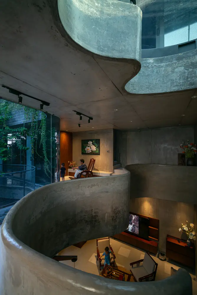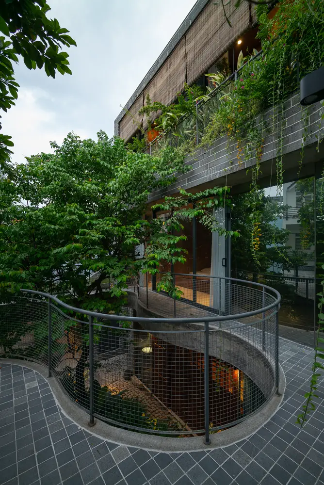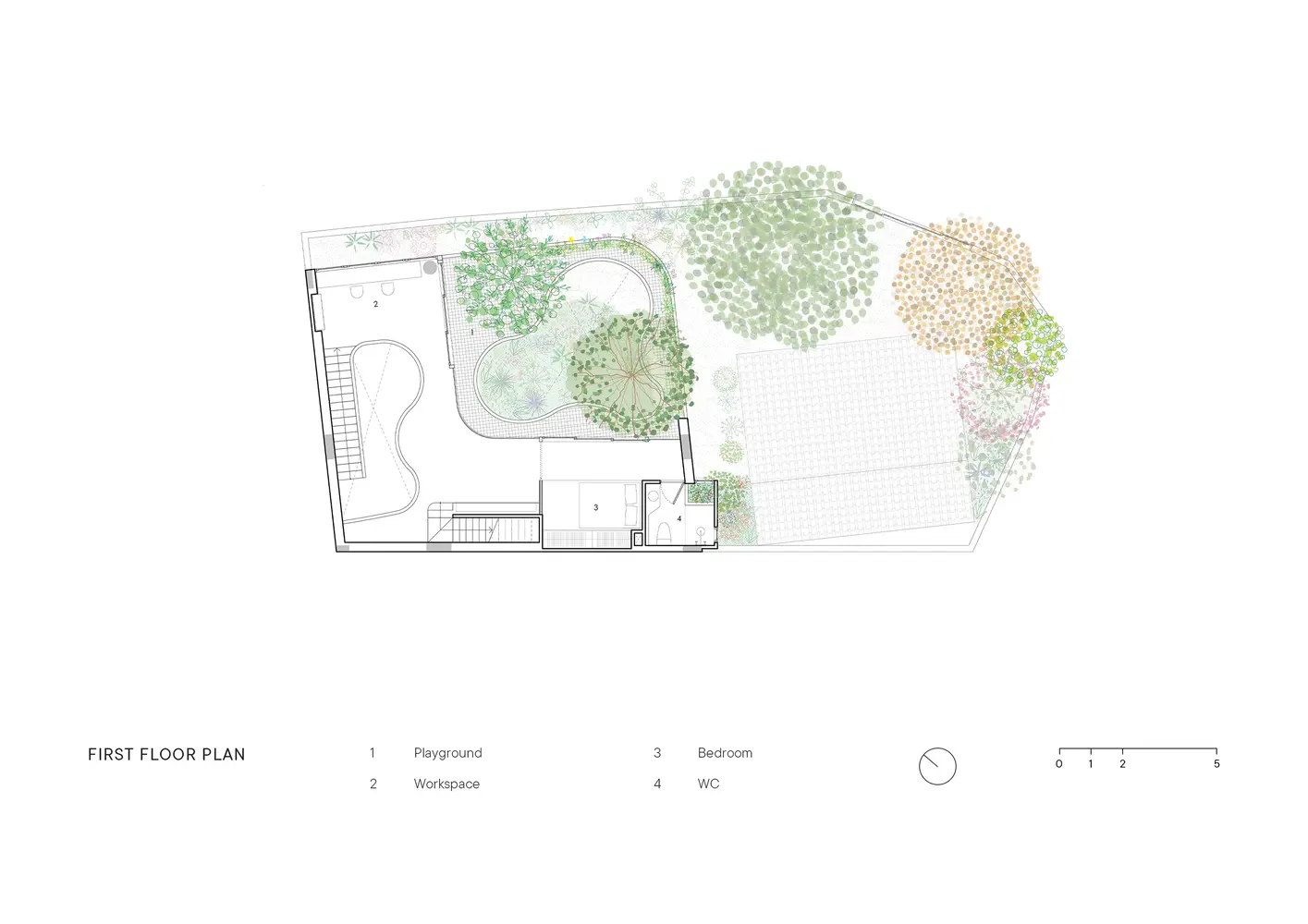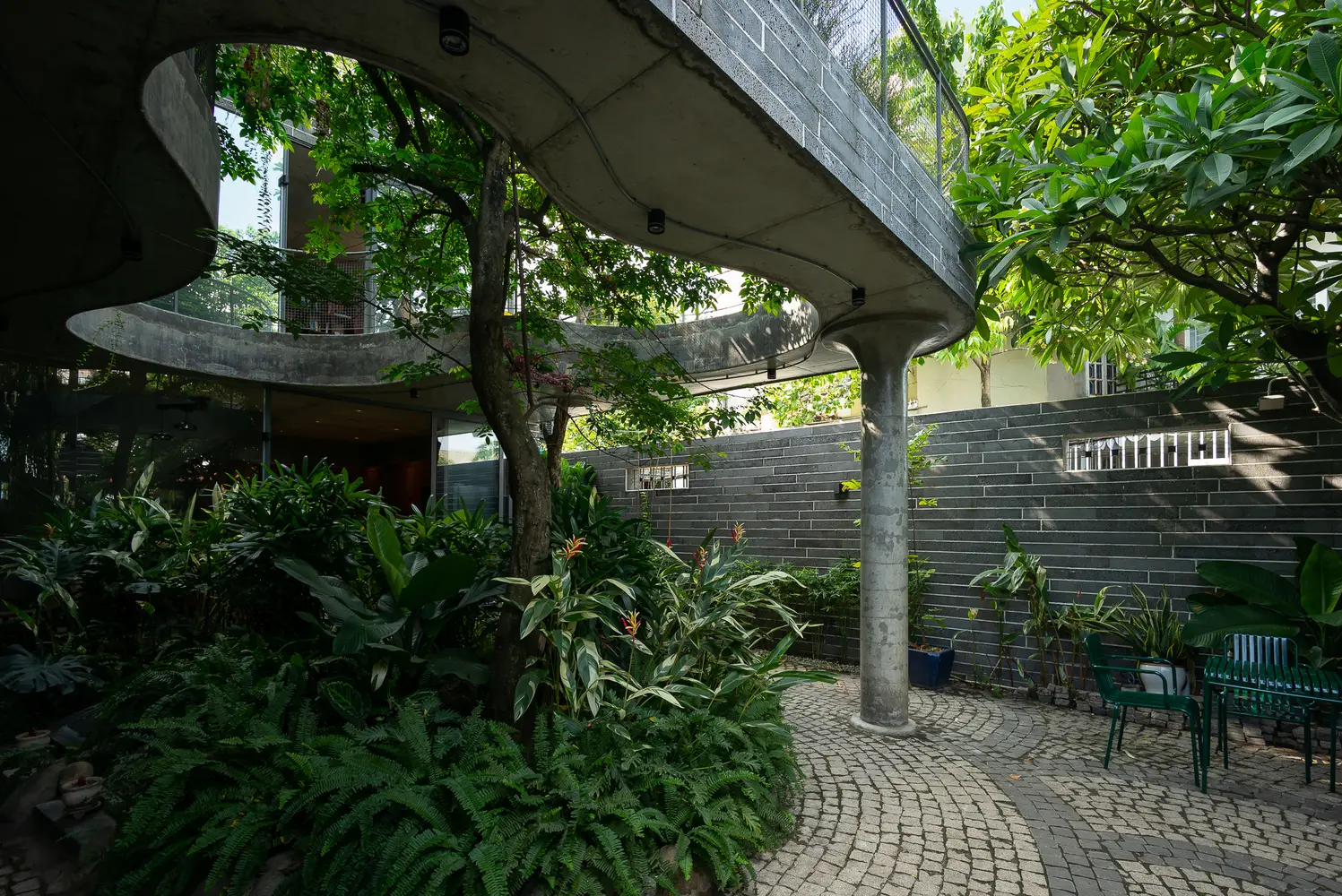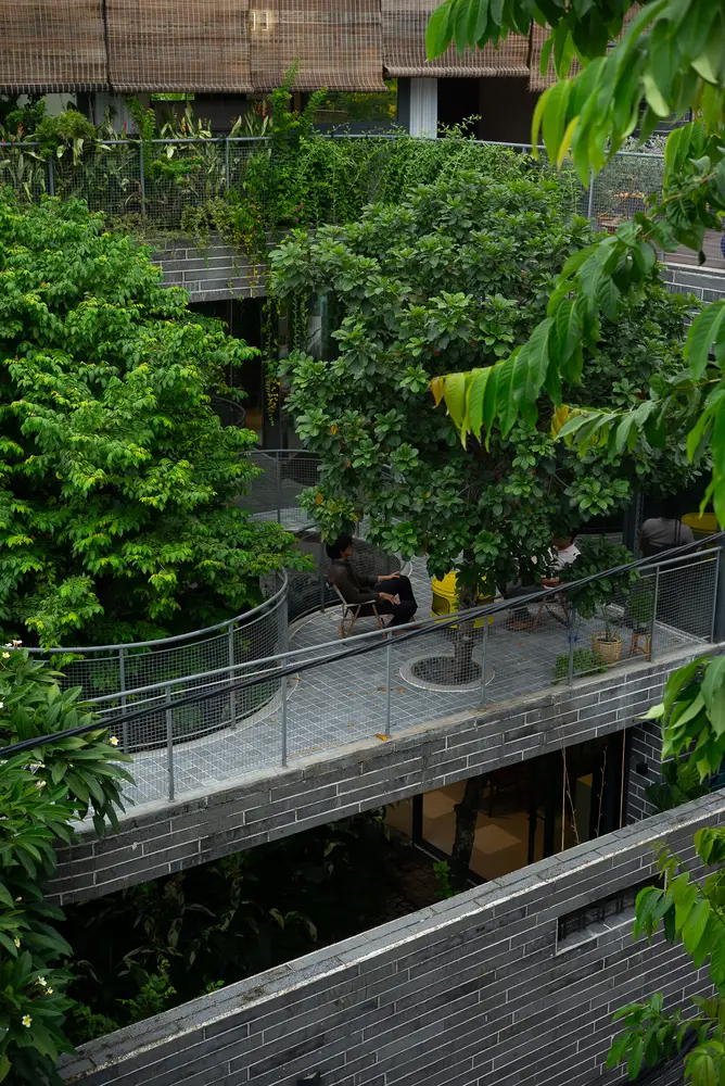 1. Tòa nhà được ví như một “công viên thu nhỏ”. Ngôi mộ ở trung tâm khu đất được tái hiện như một lõi xanh cho dự án, được bao quanh bởi nhiều lớp cây xanh. Không gian mở này trở thành khu vực ngoài trời chung, nơi người lớn có thể thưởng thức trà, tập thể dục hoặc thư giãn trong khi trẻ em có không gian để chạy nhảy, vui chơi và khám phá.
