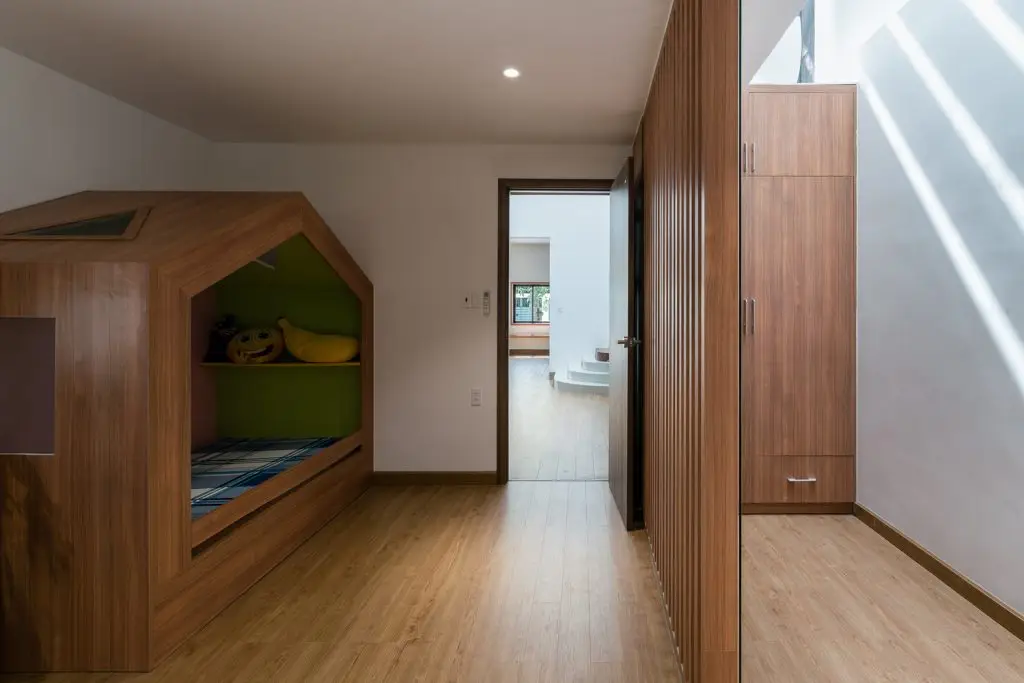 Trong văn hóa truyền thống Việt Nam, trẻ em thường ngủ chung với bố mẹ đến khi hơn 6 tuổi. Điều này cũng ảnh hưởng rất lớn đến các hoạt động của bố mẹ. Phòng ngủ được mở rộng để có thêm một giường phụ cho em bé như một phòng riêng biệt. Khi kéo rèm lại, sự riêng tư được đảm bảo. Ngoài ra, nhiều không gian đọc sách thư giãn và sân chơi cho trẻ em được thêm vào để giảm bớt áp lực cho người mẹ trong việc chăm sóc gia đình.