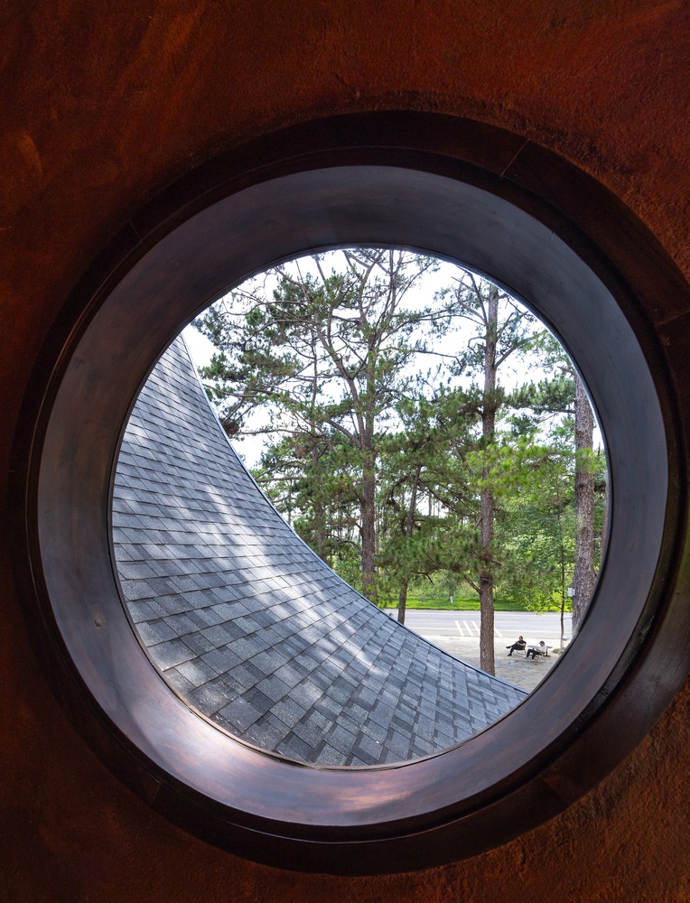 Kết cấu mái dựa trên khung thép chính, mặt dưới được lót bằng gỗ để giữ ấm và tạo cảm giác dễ chịu khi chạm vào, trong khi lớp ngoài được hoàn thiện bằng ngói nhựa đường nhẹ, có màu trung tính – rất phù hợp với khí hậu của vùng. Các cấu kiện thép được chế tạo tại xưởng và sau đó vận chuyển đến công trường để lắp đặt, đảm bảo độ chính xác kỹ thuật và rút ngắn tiến độ thi công.
