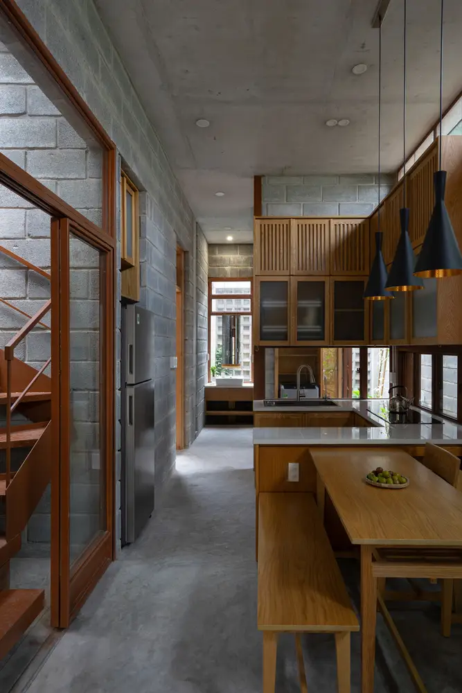 Thiết kế kiến trúc cũng nhấn mạnh sự chuyển tiếp giữa không gian trong nhà và ngoài trời, thúc đẩy mối liên hệ tự nhiên giữa con người và môi trường xung quanh. Cách tiếp cận “vừa đủ” đơn giản hóa sự phức tạp về cấu trúc, loại bỏ các yếu tố không cần thiết và tạo ra một không gian sống linh hoạt, dễ dàng thích ứng với nhu cầu thay đổi của gia đình.