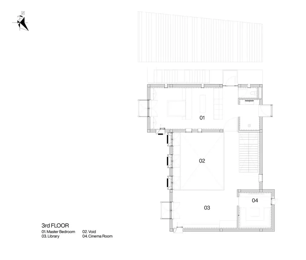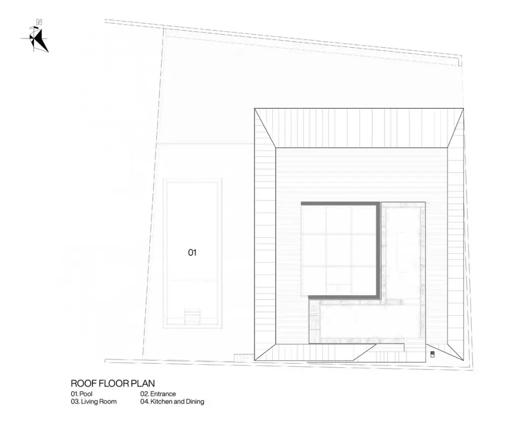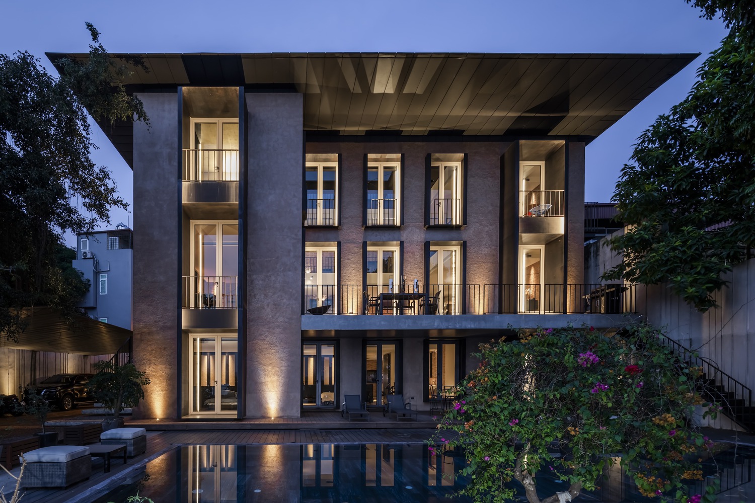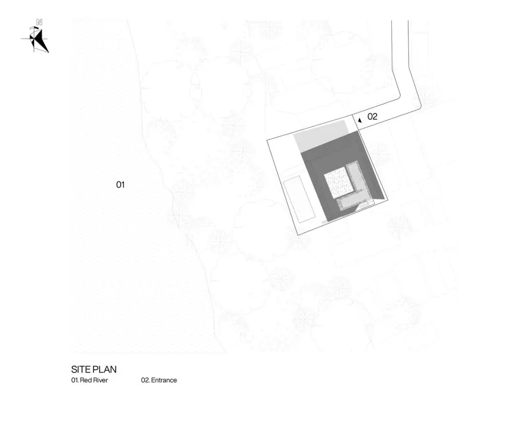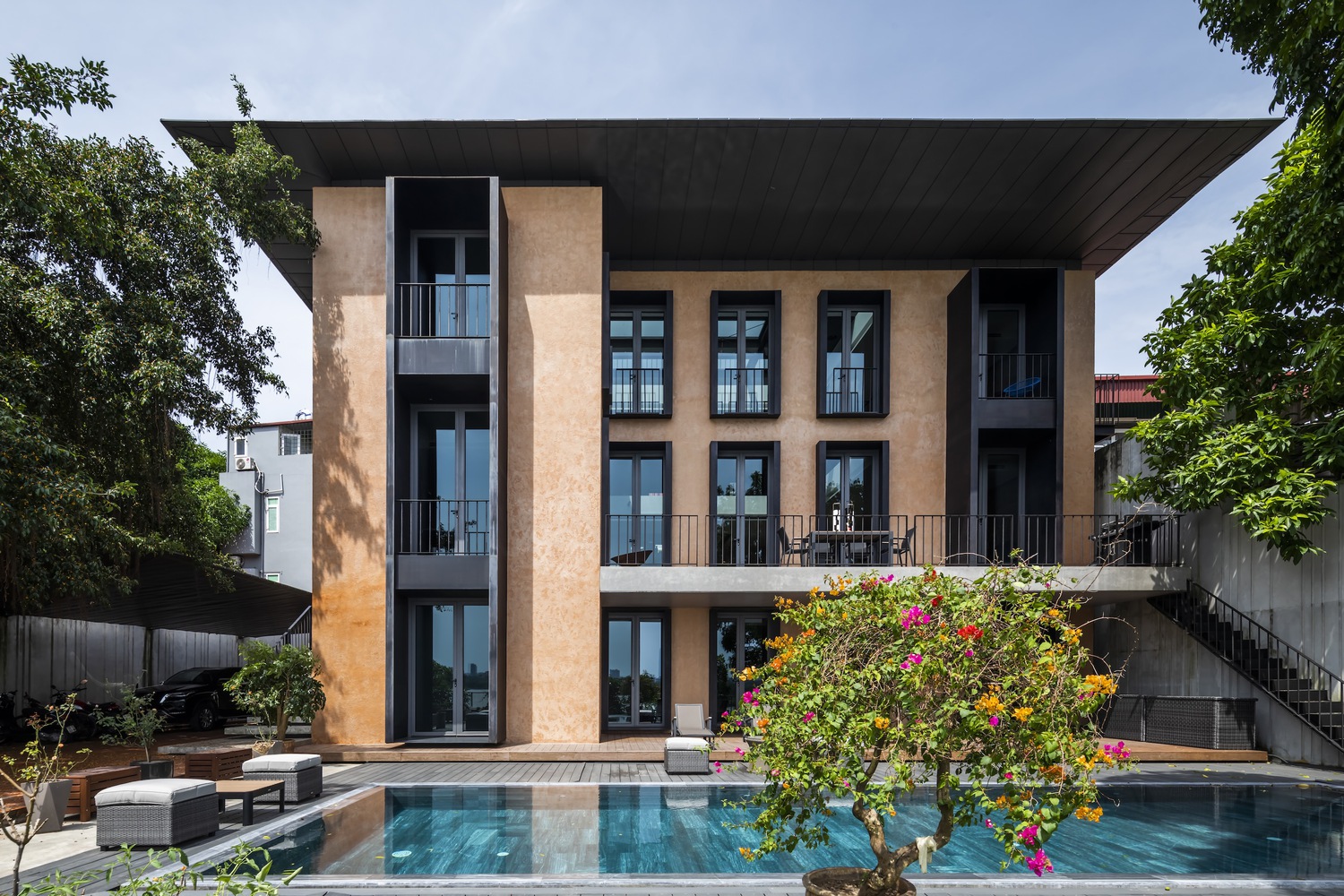 Tận dụng vị trí đắc địa nhìn ra sông Hồng và cầu Long Biên, ngôi nhà được thiết kế với nhiều cửa sổ kính lớn trong suốt theo kiến trúc hiện đại của Pháp, giúp ngôi nhà tràn ngập ánh sáng tự nhiên vào ban ngày và thoáng đãng vào ban đêm. Chủ nhà có thể tận hưởng tầm nhìn ra sông Hồng mà không bị cản trở bởi cảnh quan thiên nhiên mát mẻ. Tầng trệt được thiết kế là không gian thư giãn cho gia chủ với hồ bơi phía trước. Tầng 1 là khu vực sinh hoạt chung của gia đình và tiếp khách. Tầng 2 là không gian riêng tư cho mỗi thành viên trong gia đình.