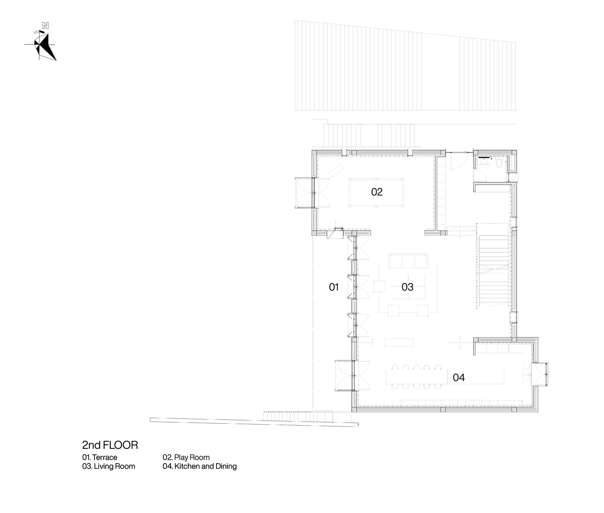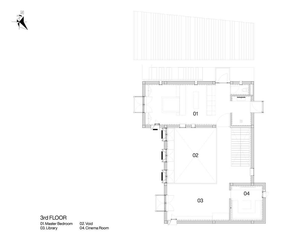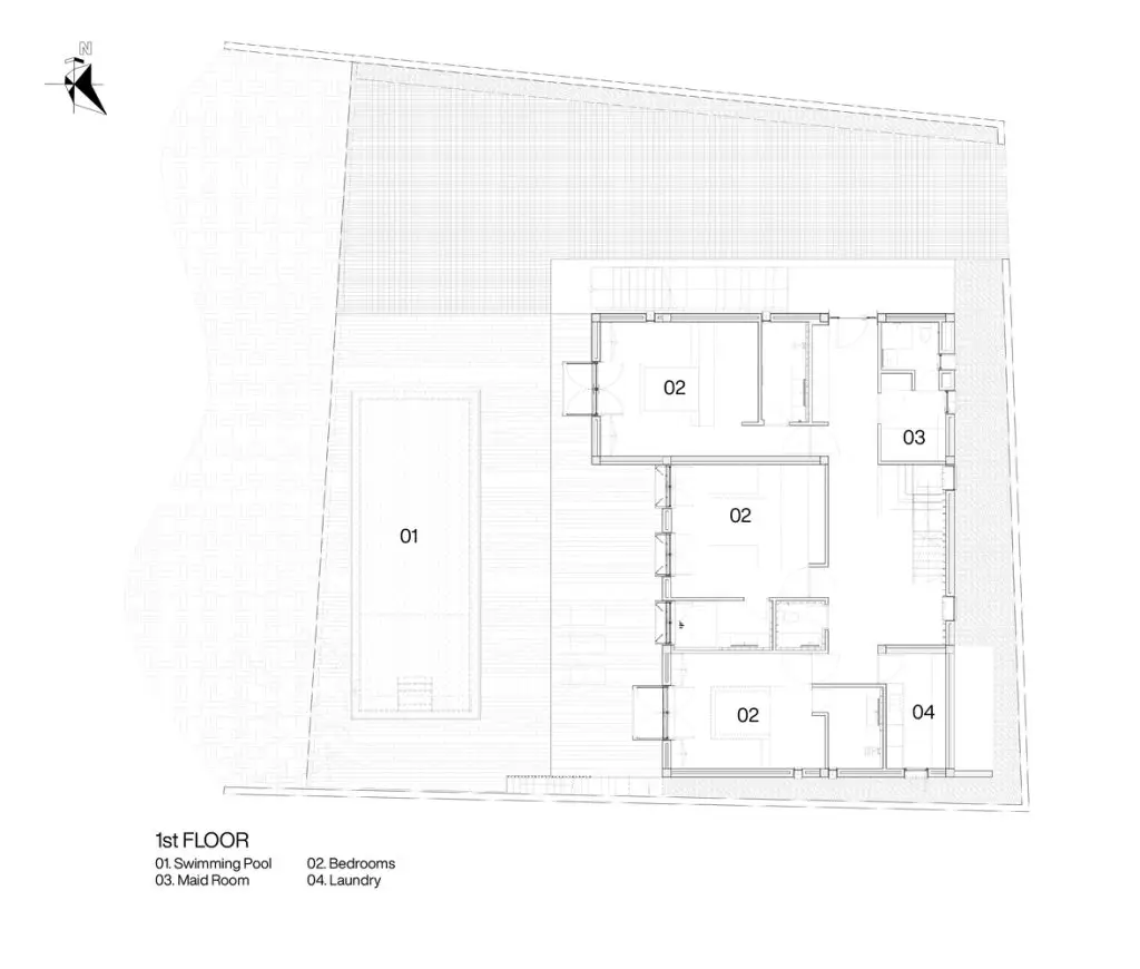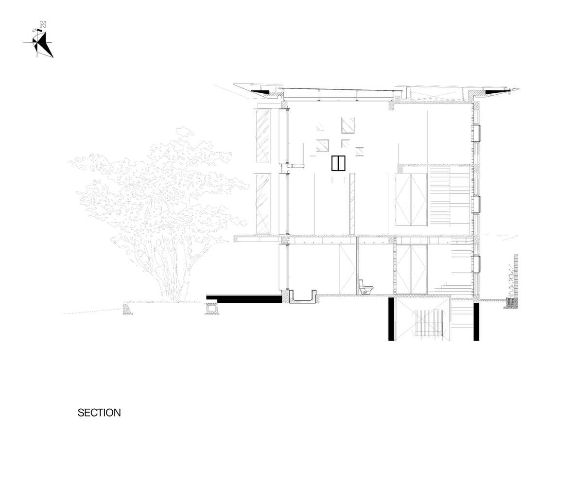 Tận dụng vị trí đắc địa nhìn ra sông Hồng và cầu Long Biên, ngôi nhà được thiết kế với nhiều cửa sổ kính lớn trong suốt theo kiến trúc hiện đại của Pháp, giúp ngôi nhà tràn ngập ánh sáng tự nhiên vào ban ngày và thoáng đãng vào ban đêm. Chủ nhà có thể tận hưởng tầm nhìn ra sông Hồng mà không bị cản trở bởi cảnh quan thiên nhiên mát mẻ. Tầng trệt được thiết kế là không gian thư giãn cho gia chủ với hồ bơi phía trước. Tầng 1 là khu vực sinh hoạt chung của gia đình và tiếp khách. Tầng 2 là không gian riêng tư cho mỗi thành viên trong gia đình.