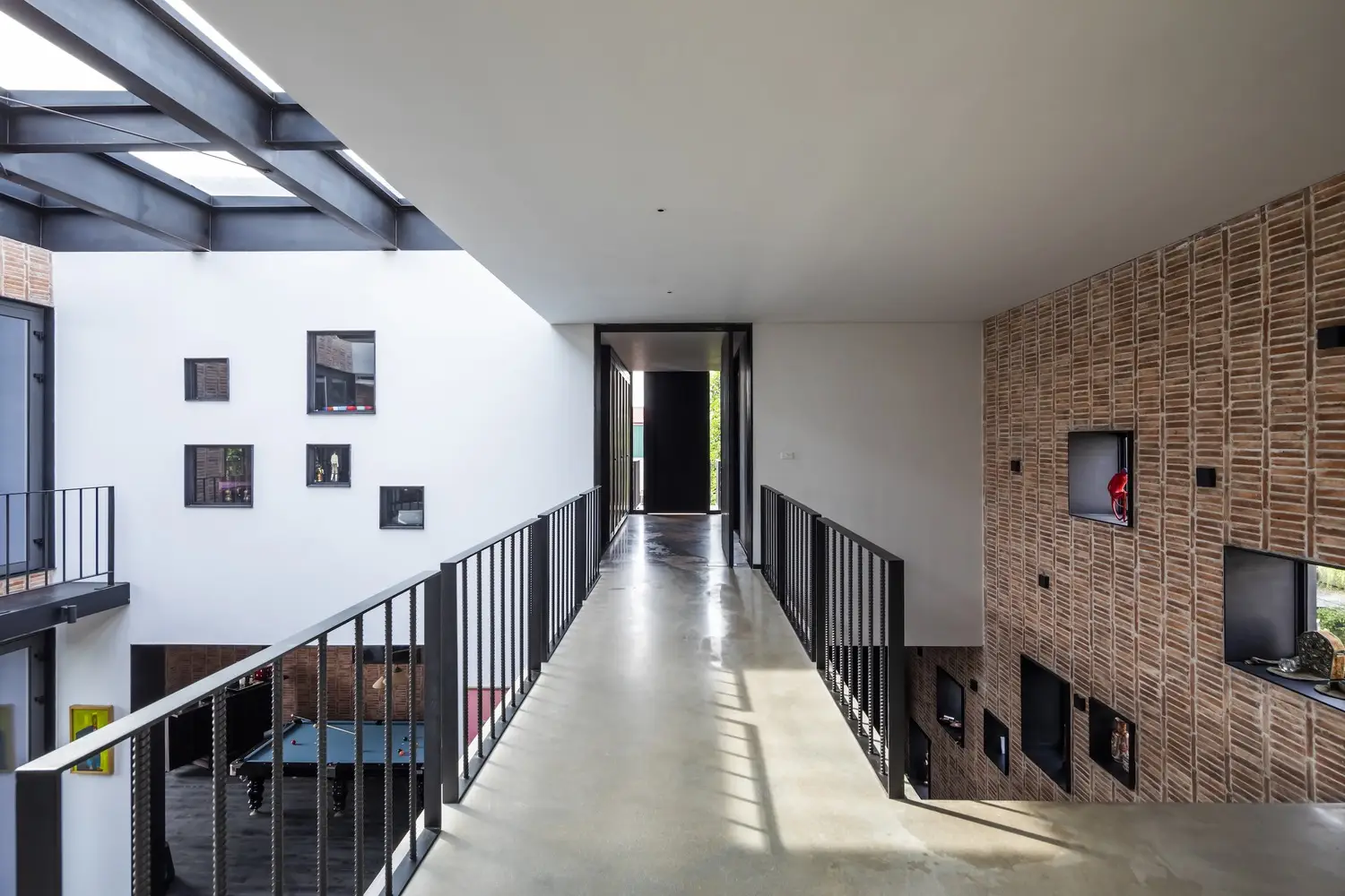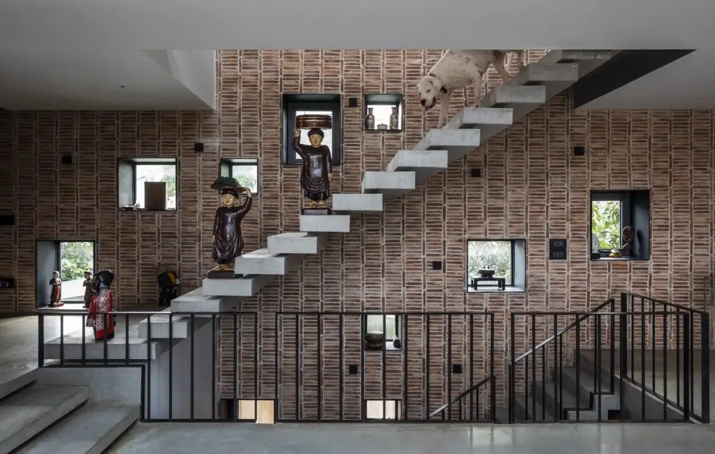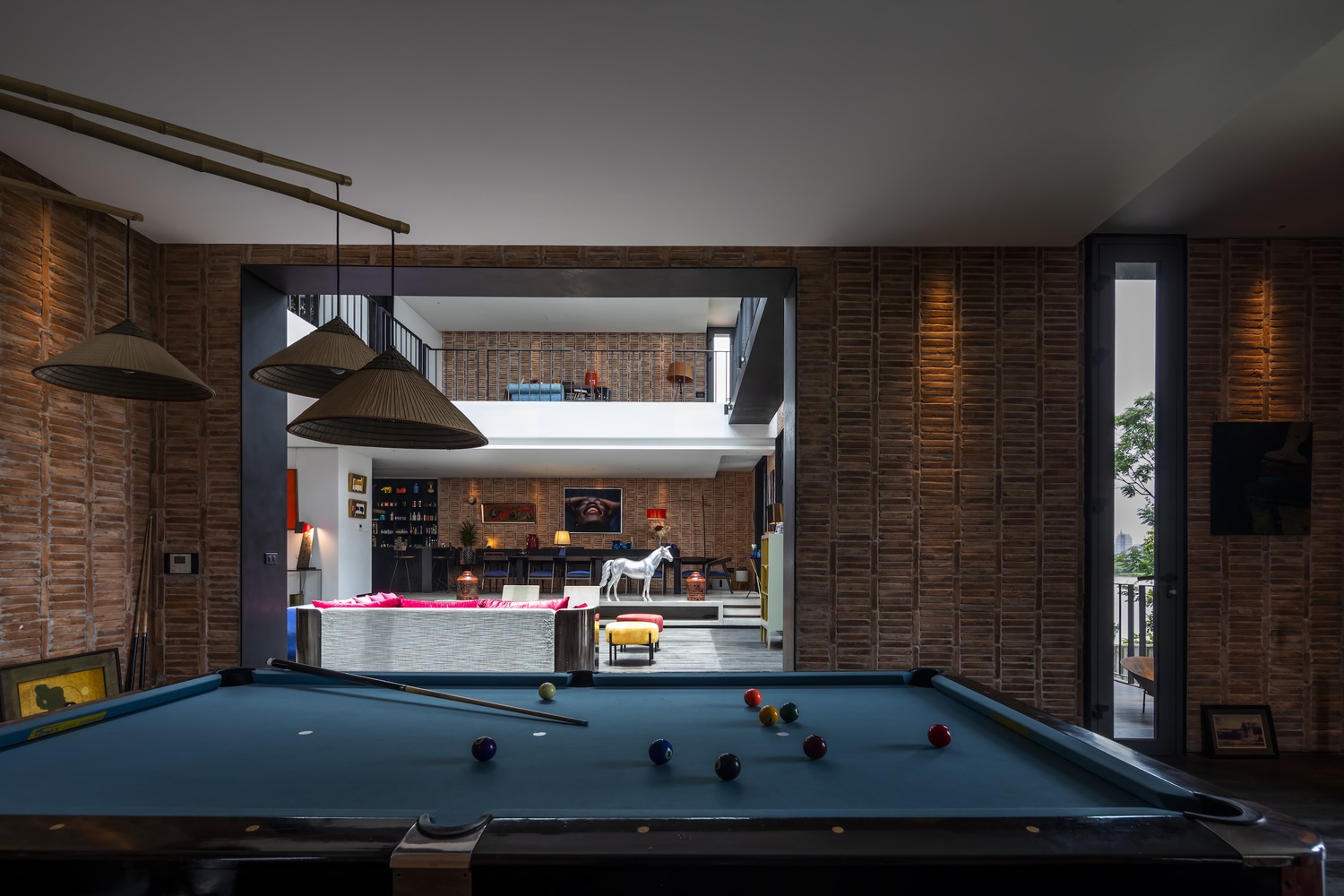 Gạch mộc – nét tương đồng giữa kiến trúc truyền thống Việt Nam và Pháp, được sử dụng để mang đến cảm giác ấm cúng và hài hòa cho các chi tiết trang trí nghệ thuật. Bằng cách sáng tạo nên những viên gạch mộc mới lạ, chúng tôi đã mang đến vẻ đẹp hiện đại, thanh lịch và sang trọng cho nội thất ngôi nhà. Ngôi nhà nằm bên bờ sông Hồng, nơi lưu giữ nhiều giá trị lịch sử và văn hóa. Dòng sông đã chứng kiến và đóng góp vào hàng ngàn năm lịch sử hình thành và phát triển của thủ đô Thăng Long – Đông Đô – Hà Nội.