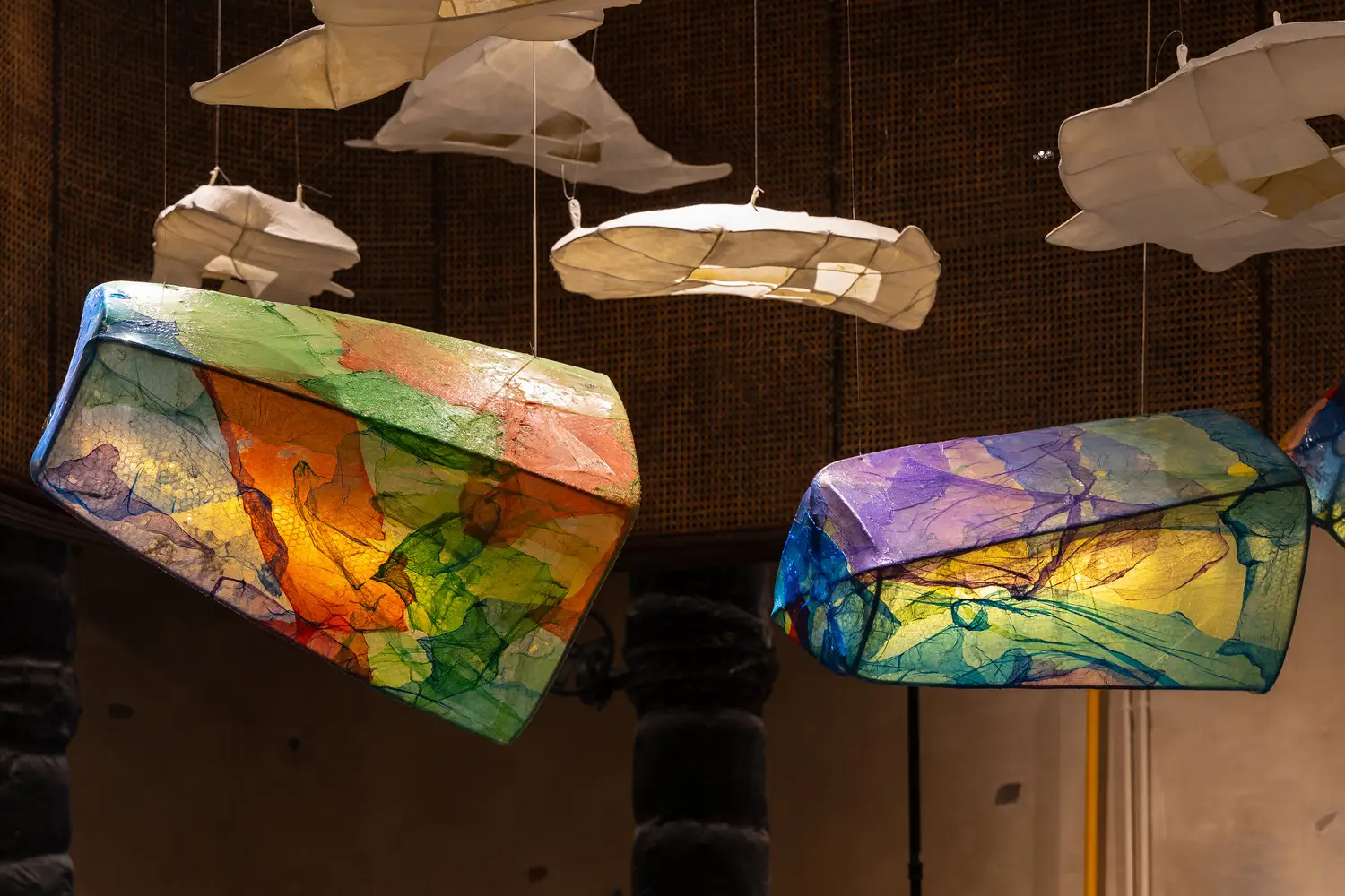Nghệ sĩ và Tác phẩm Nghệ thuật Địa phương: Hai nghệ sĩ địa phương Kim Vũ Thư và Phương Gió đã mang đến những tác phẩm nghệ thuật sống động và đầy màu sắc được làm từ vật liệu tái chế, tô điểm thêm nét độc đáo cho không gian nhà hàng. Những tác phẩm nghệ thuật này được thiết kế riêng cho nhà hàng, sử dụng túi ni lông tái chế và giấy dó truyền thống. Những tác phẩm nghệ thuật này không chỉ là điểm nhấn thẩm mỹ mà còn củng cố cam kết phát triển bền vững thông qua việc sử dụng vật liệu tái chế.