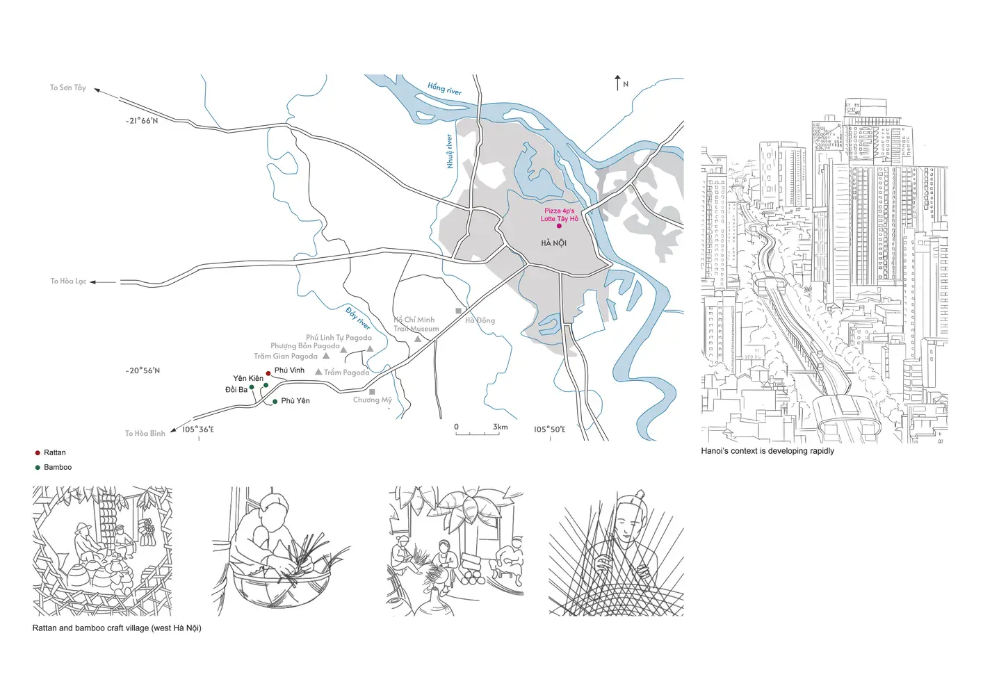 Nghệ thuật Thủ công Địa phương: Dự án kết hợp vật liệu và kỹ thuật từ các làng nghề thủ công truyền thống của Hà Nội, tôn vinh di sản văn hóa phong phú của thành phố. Bằng cách kết hợp mây, tre và vật liệu tái chế, thiết kế tôn vinh các kỹ năng thủ công truyền thống đồng thời điều chỉnh chúng cho phù hợp với thị hiếu đương đại.