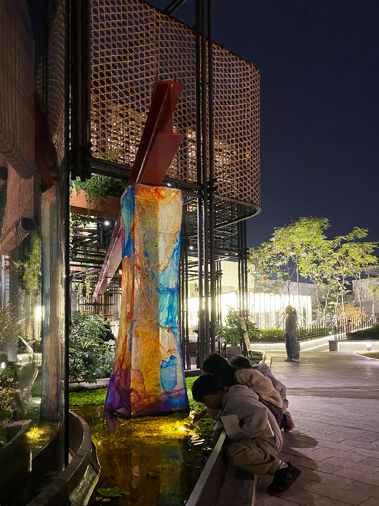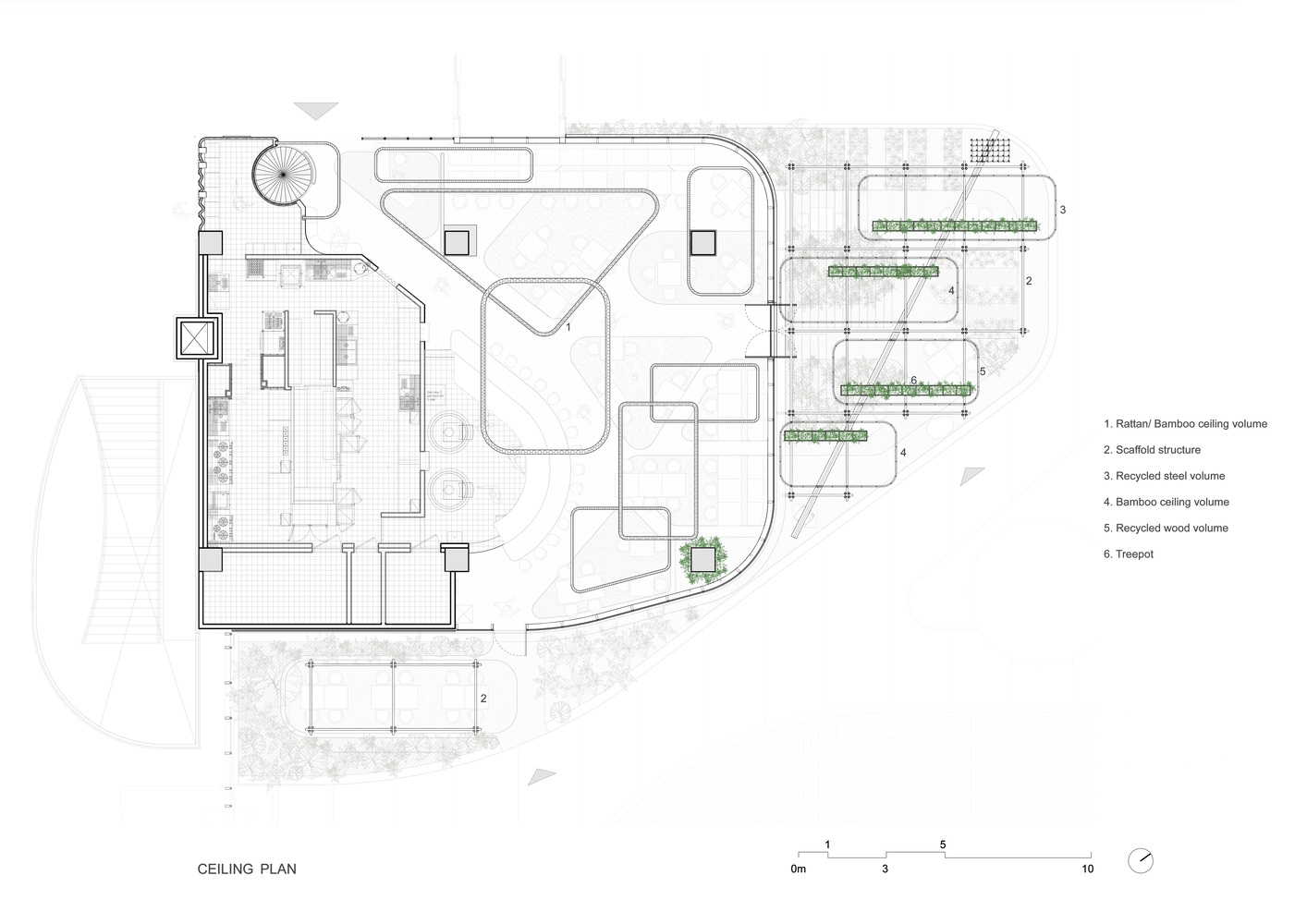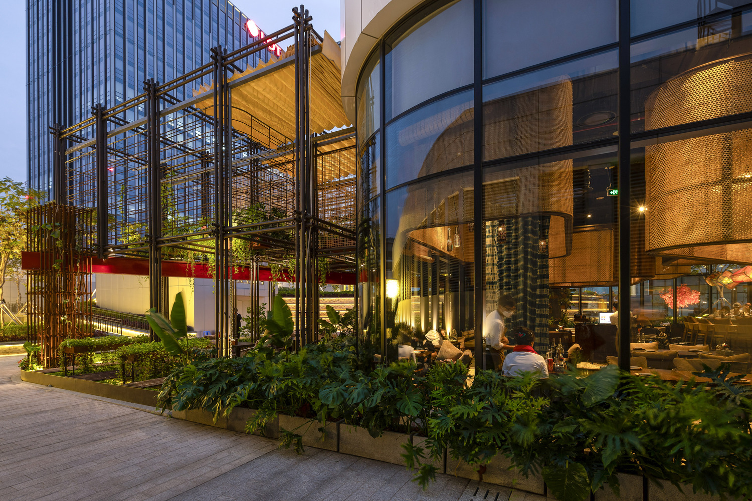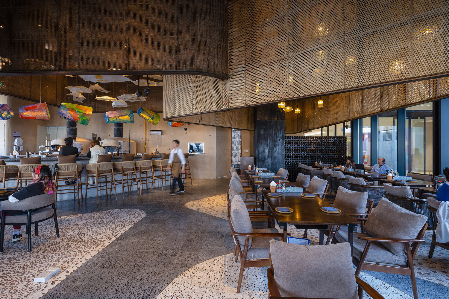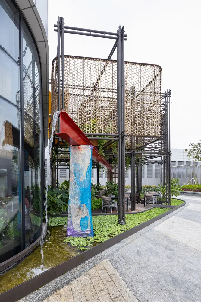 Hòa nhập với Thiên nhiên: Ranh giới không gian bên ngoài được xác định bởi mặt nước và hệ thống thủy canh, cung cấp dinh dưỡng cho cả cây trồng ngoài trời và trong nhà, cũng như rau củ phục vụ nhà hàng. Hệ thống này giúp tăng khả năng làm mát của không gian, đồng thời mang lại giá trị giáo dục, mang đến những trải nghiệm và hiểu biết về thiên nhiên. Hệ thống thủy canh nâng cao uy tín bền vững của nhà hàng, đồng thời góp phần tạo nên một môi trường ngoài trời mát mẻ và hấp dẫn hơn.