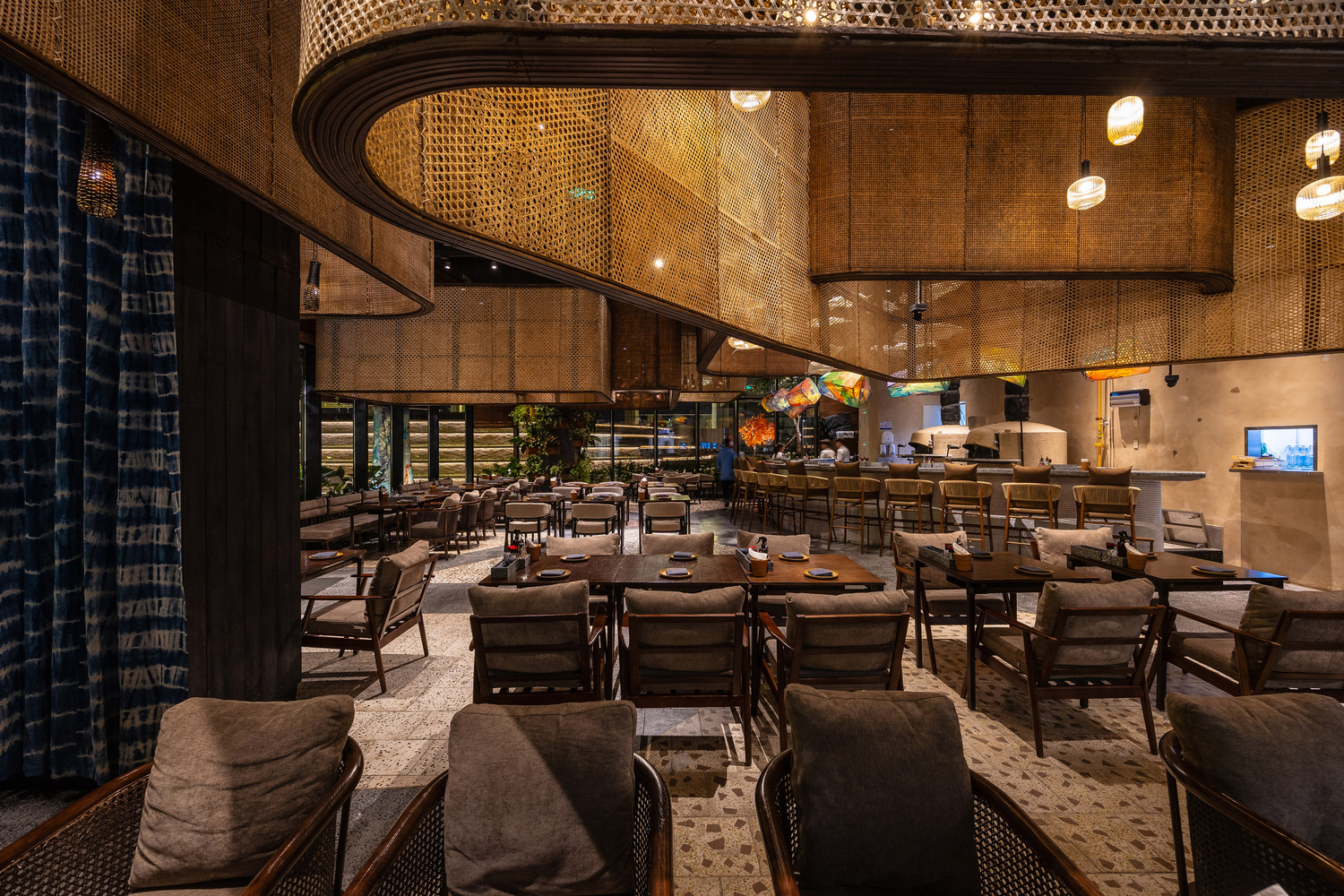 Sự đa dạng về không gian: Nội thất nhà hàng sở hữu nhiều cấu trúc không gian đa dạng, bao gồm độ cao trần nhà và điều kiện ánh sáng khác nhau. Điều này tạo nên một bầu không khí năng động và hấp dẫn cho thực khách, cho phép họ khám phá các lựa chọn chỗ ngồi và trải nghiệm khác nhau trong không gian.