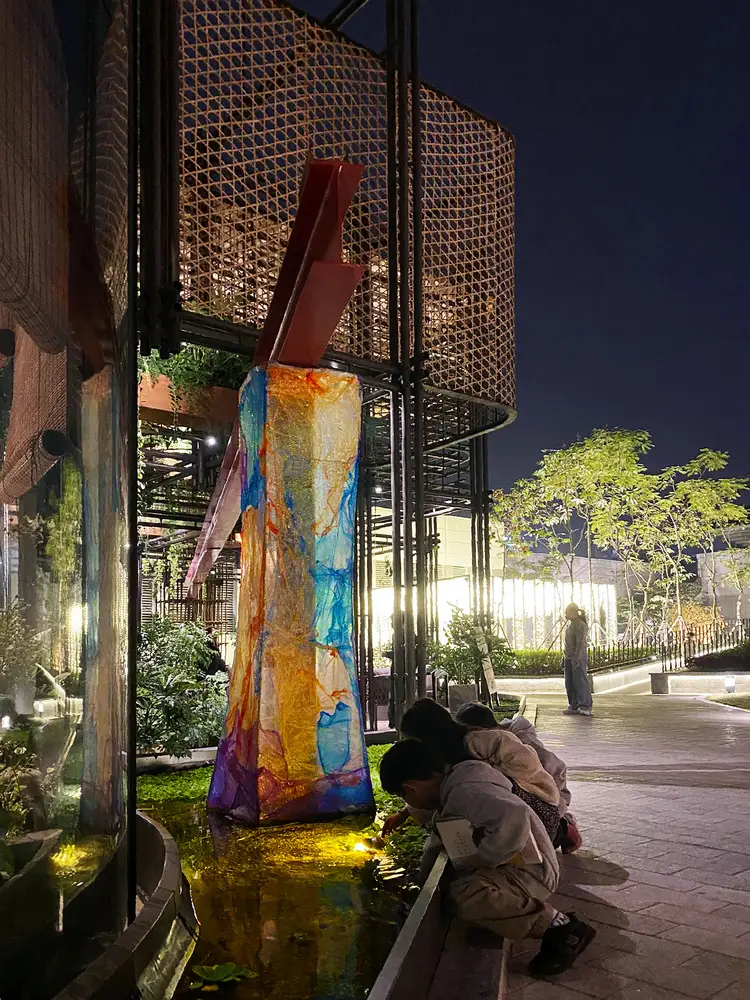 Nghệ sĩ và Tác phẩm Nghệ thuật Địa phương: Hai nghệ sĩ địa phương Kim Vũ Thư và Phương Gió đã mang đến những tác phẩm nghệ thuật sống động và đầy màu sắc được làm từ vật liệu tái chế, tô điểm thêm nét độc đáo cho không gian nhà hàng. Những tác phẩm nghệ thuật này được thiết kế riêng cho nhà hàng, sử dụng túi ni lông tái chế và giấy dó truyền thống. Những tác phẩm nghệ thuật này không chỉ là điểm nhấn thẩm mỹ mà còn củng cố cam kết phát triển bền vững thông qua việc sử dụng vật liệu tái chế.