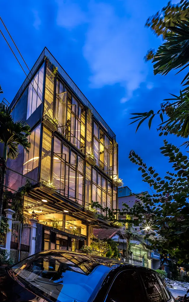 Mô tả công trình do các kiến ​​trúc sư cung cấp. Công trình kết hợp giữa hiện đại và Đông Dương, không gian bên trong và bên ngoài, quá khứ và tương lai. Kết cấu thép tiền chế của nó mang tính (tạm) thời, linh hoạt, bền vững và có thể di dời. Và chỉ mất 3 tháng từ khâu lên ý tưởng đến khi hoàn thành. Đó là tòa nhà đa năng mới tại TP.HCM do công ty thiết kế nội thất Module K của Việt Nam thiết kế . Tòa nhà nằm nép mình giữa những biệt thự cổ điển và mang phong cách Pháp tại khu Thảo Điền, một khu phố thời thượng của TP.HCM. “Chúng tôi đã chọn giải pháp kết cấu thép tiền chế, khá hiếm gặp ở Việt Nam nơi phương thức xây dựng truyền thống là gạch và bê tông. Nó tiết kiệm chi phí, dễ lắp đặt và tháo dỡ, cực kỳ linh hoạt, nhẹ nhàng và thoáng đãng. Chúng tôi có thể dễ dàng tháo dỡ khi hợp đồng thuê 10 năm kết thúc và di chuyển đến một địa điểm mới cho một ngôi nhà yên tĩnh khác của riêng mình. Nó cũng giúp bảo toàn vốn đầu tư ban đầu”, Jade Nguyễn Kim Ngọc, giám đốc thiết kế của Module K cho biết.