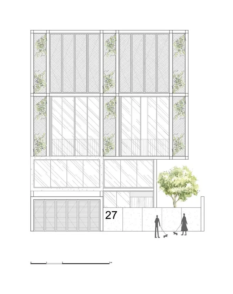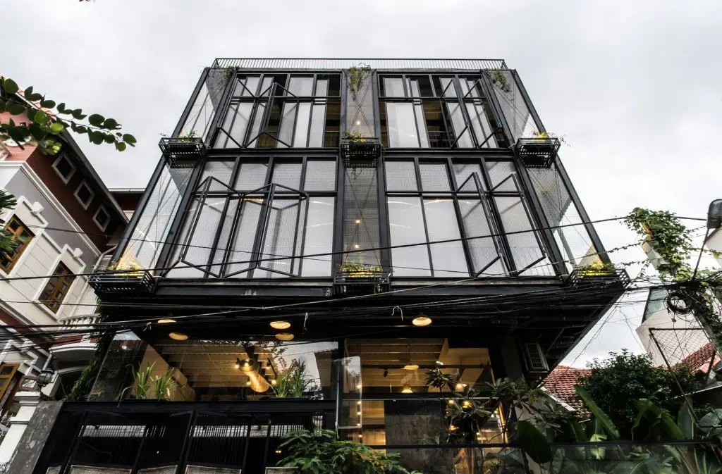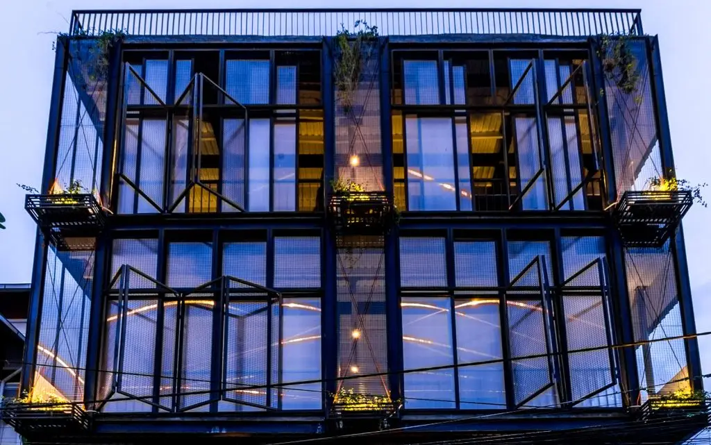 Mô tả công trình do các kiến ​​trúc sư cung cấp. Công trình kết hợp giữa hiện đại và Đông Dương, không gian bên trong và bên ngoài, quá khứ và tương lai. Kết cấu thép tiền chế của nó mang tính (tạm) thời, linh hoạt, bền vững và có thể di dời. Và chỉ mất 3 tháng từ khâu lên ý tưởng đến khi hoàn thành. Đó là tòa nhà đa năng mới tại TP.HCM do công ty thiết kế nội thất Module K của Việt Nam thiết kế . Tòa nhà nằm nép mình giữa những biệt thự cổ điển và mang phong cách Pháp tại khu Thảo Điền, một khu phố thời thượng của TP.HCM. “Chúng tôi đã chọn giải pháp kết cấu thép tiền chế, khá hiếm gặp ở Việt Nam nơi phương thức xây dựng truyền thống là gạch và bê tông. Nó tiết kiệm chi phí, dễ lắp đặt và tháo dỡ, cực kỳ linh hoạt, nhẹ nhàng và thoáng đãng. Chúng tôi có thể dễ dàng tháo dỡ khi hợp đồng thuê 10 năm kết thúc và di chuyển đến một địa điểm mới cho một ngôi nhà yên tĩnh khác của riêng mình. Nó cũng giúp bảo toàn vốn đầu tư ban đầu”, Jade Nguyễn Kim Ngọc, giám đốc thiết kế của Module K cho biết.