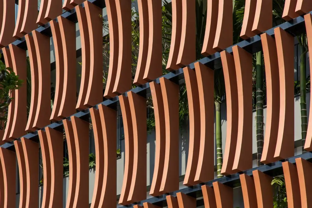 Mặt tiền kiến ​​trúc của tòa nhà tạo nên một lớp màu xanh lam gợi nhớ đến những ký ức truyền thống của người Việt Nam. Lớp kính này sẽ làm giảm cường độ ánh sáng mặt trời chiếu vào tòa nhà, đồng thời tăng thêm sự riêng tư cho các không gian sinh hoạt bên trong. Lớp vườn nằm giữa lớp màu xanh lam và các không gian sinh hoạt là một không gian trung gian giúp điều hòa vi khí hậu và làm nổi bật cảnh quan, tạo cảm giác thư thái cho tâm hồn con người.