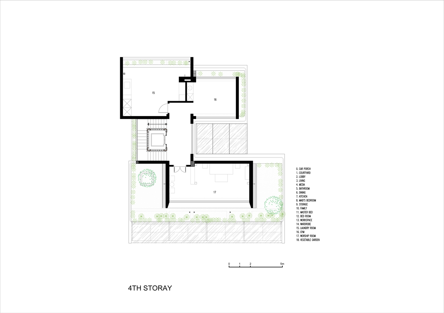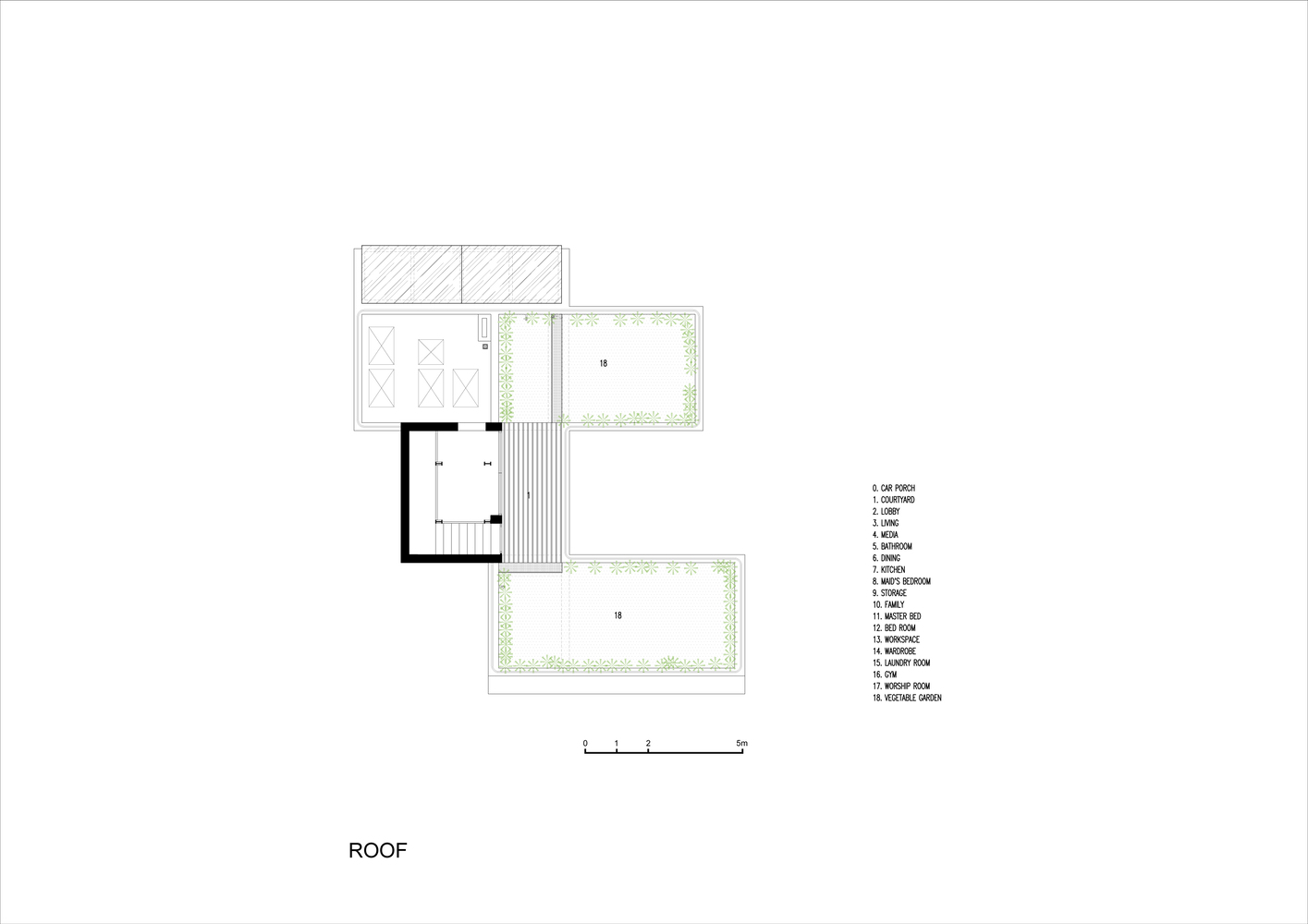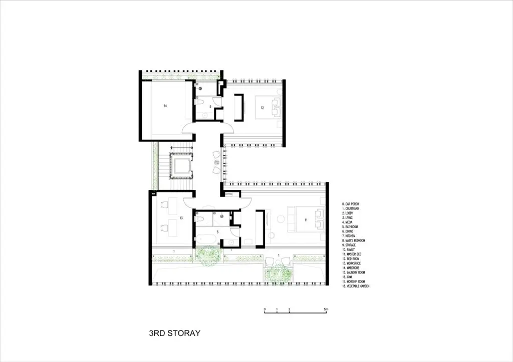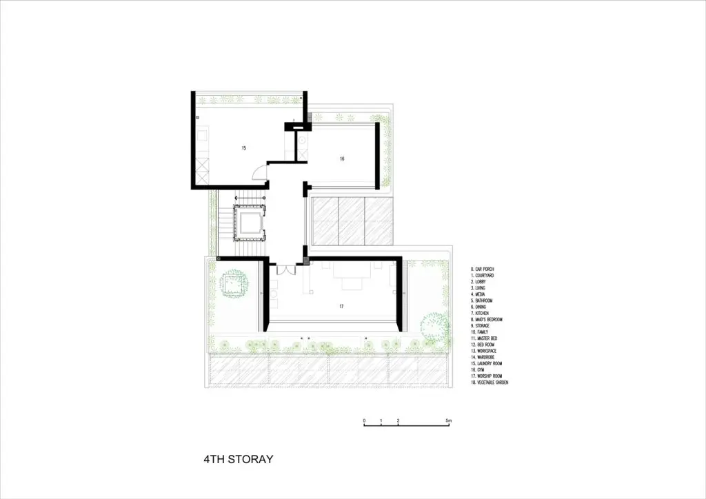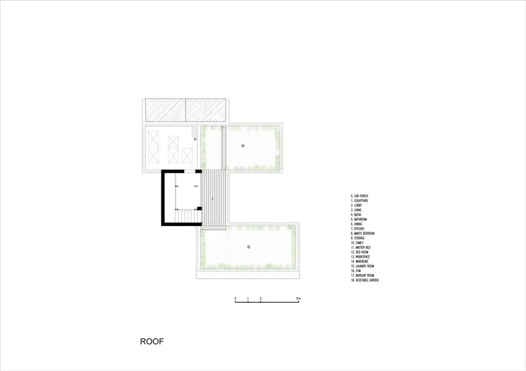 Và trên mái nhà, nơi đón ánh sáng tự nhiên trực tiếp, sẽ bố trí các khu vườn, trong đó có một vườn rau tươi cung cấp rau sạch cho gia đình, đồng thời tăng cường các hoạt động cho người già và trẻ em.
