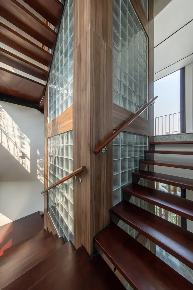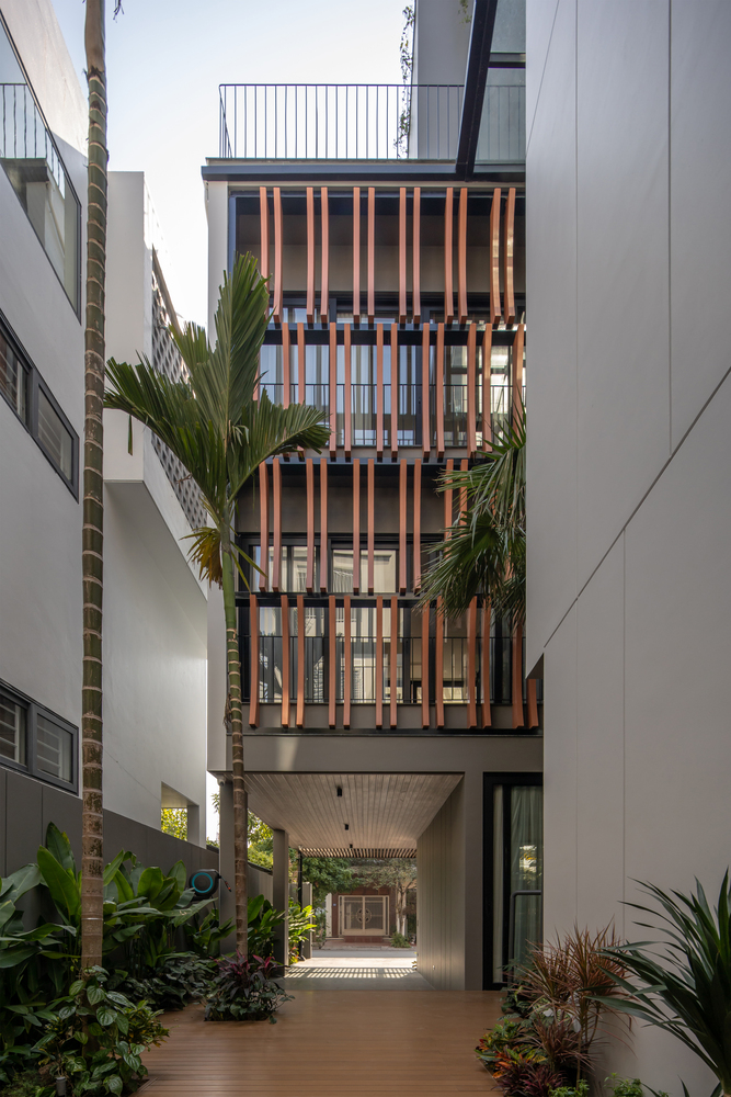 Các khoảng sân ở tầng 1 và không gian kết nối rất linh hoạt, được liên kết với nhau để tạo điều kiện cho luồng không khí lưu thông hài hòa, làm mát tất cả các không gian.