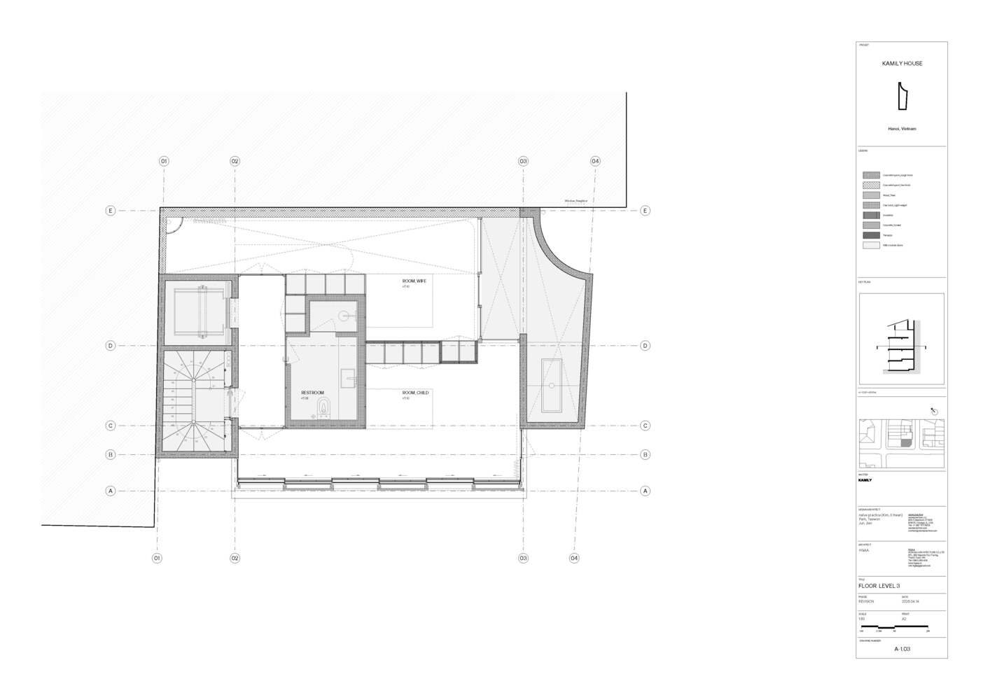 Mô tả văn bản được cung cấp bởi các kiến trúc sư. Dự án nhà ở dành cho một gia đình có tỷ lệ theo chiều dọc này bắt đầu từ hai câu chuyện: một câu chuyện rất riêng của cặp vợ chồng khách hàng và những nguyên tắc chung về các kiểu nhà ở trong khí hậu Hà Nội.