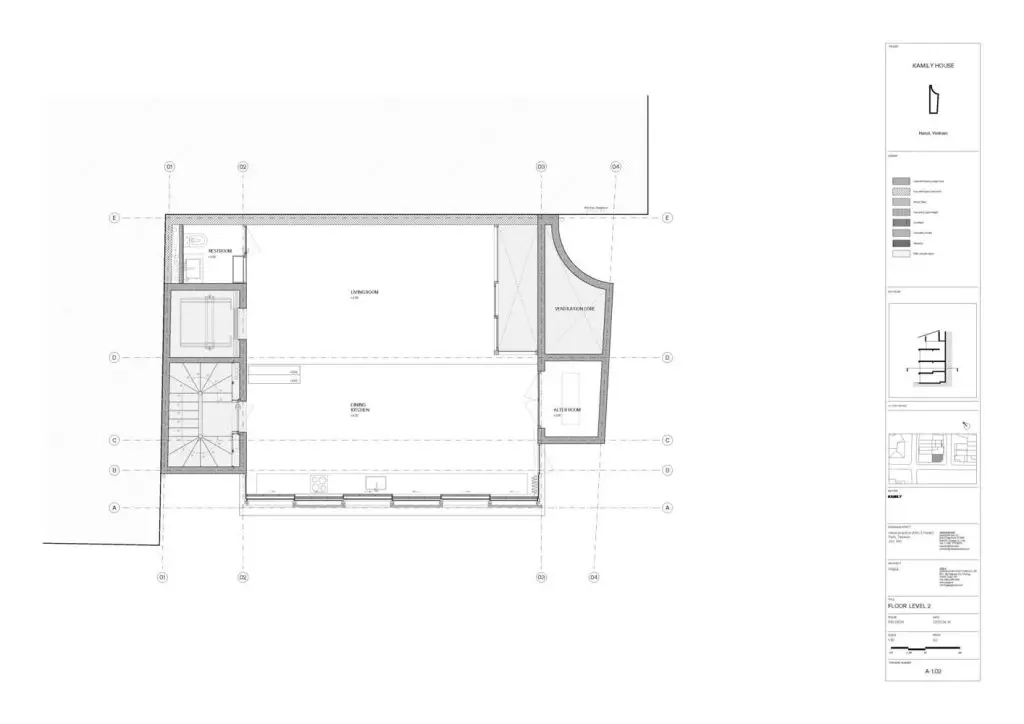 Ngôi nhà được kết nối với không gian ngoài trời rộng để tạo luồng không khí và được bao quanh bởi cây xanh để lọc ánh sáng. Tuy nhiên, sự phát triển hiện đại của thành phố đã tập trung vào việc đáp ứng mật độ dân số tăng theo cấp số nhân hơn là bảo tồn kiểu nhà ở truyền thống để tạo ra tiện nghi nhiệt thụ động. Ngôi nhà này cố gắng kết hợp lưu thông không khí và lọc ánh nắng mặt trời, những đặc điểm thường thấy trong kiến trúc khu vực, trong bối cảnh hiện đại dày đặc của Hà Nội.