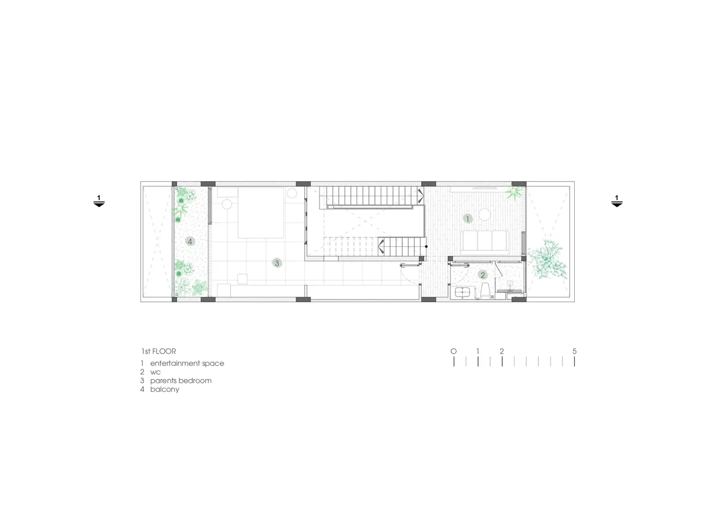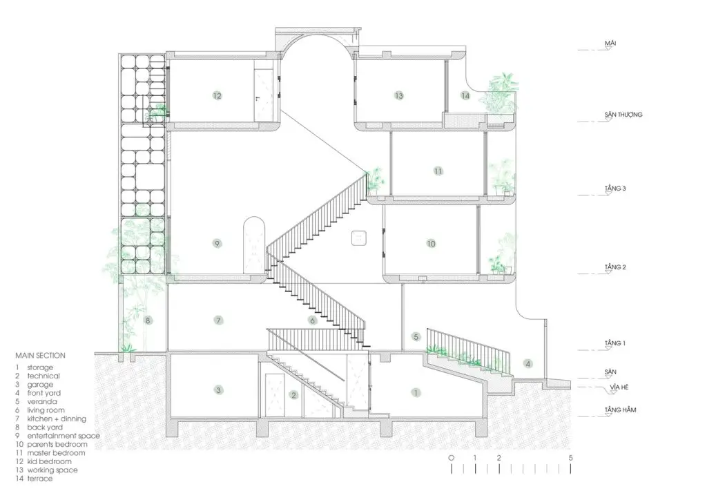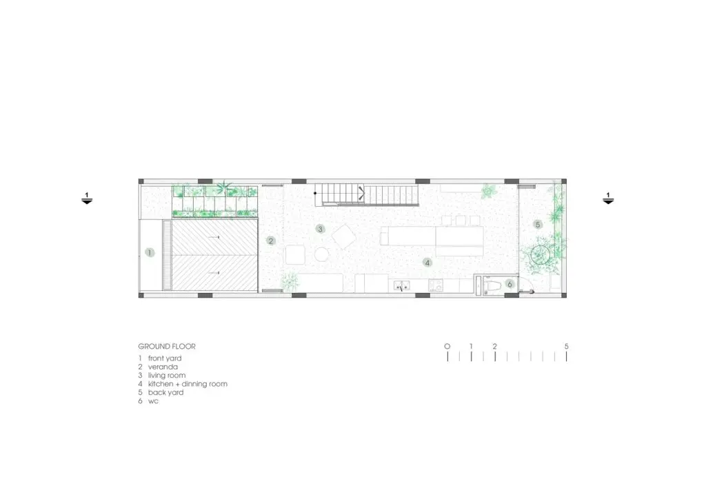 Mô tả văn bản do các kiến ​​trúc sư cung cấp. Ngôi nhà trên diện tích 5×18 là tổ ấm của 4 thành viên. Câu chuyện kể về ngôi nhà của một cặp vợ chồng trẻ vừa du học về nước và đang sống cùng bố mẹ, mong muốn có một ngôi nhà mang đậm dấu ấn riêng, thể hiện cá tính mới cũng như những suy nghĩ mới về không gian sống.