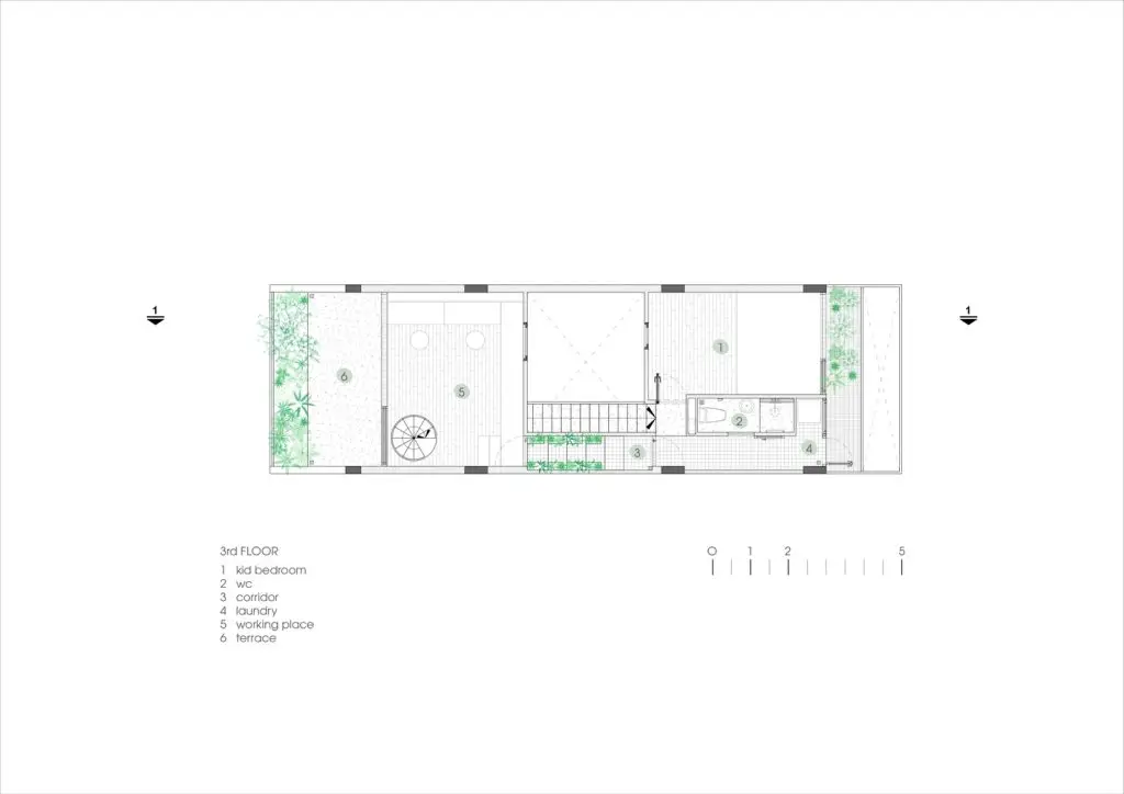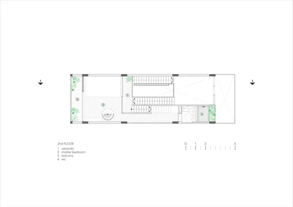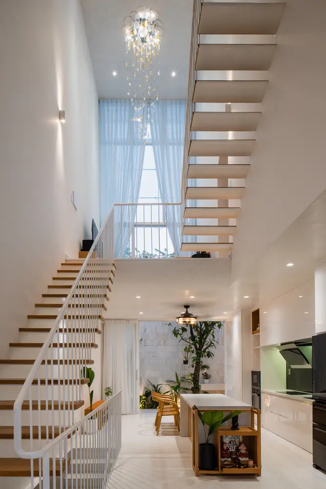 Mô tả văn bản do các kiến ​​trúc sư cung cấp. Ngôi nhà trên diện tích 5×18 là tổ ấm của 4 thành viên. Câu chuyện kể về ngôi nhà của một cặp vợ chồng trẻ vừa du học về nước và đang sống cùng bố mẹ, mong muốn có một ngôi nhà mang đậm dấu ấn riêng, thể hiện cá tính mới cũng như những suy nghĩ mới về không gian sống.