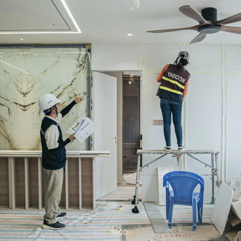 Giai đoạn thi công hoàn thiện nội thất (Nguồn: Decox)